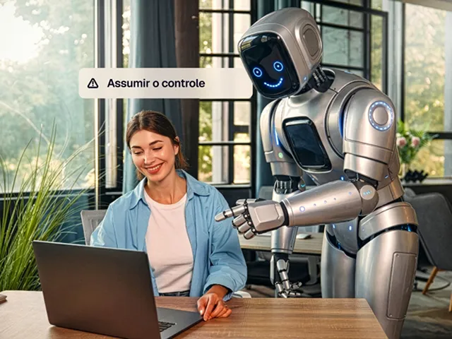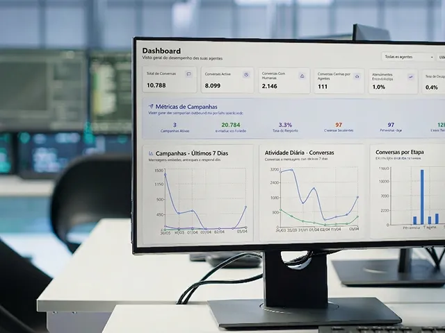 Painel completo com histórico, métricas e intervenção humana quando precisar.